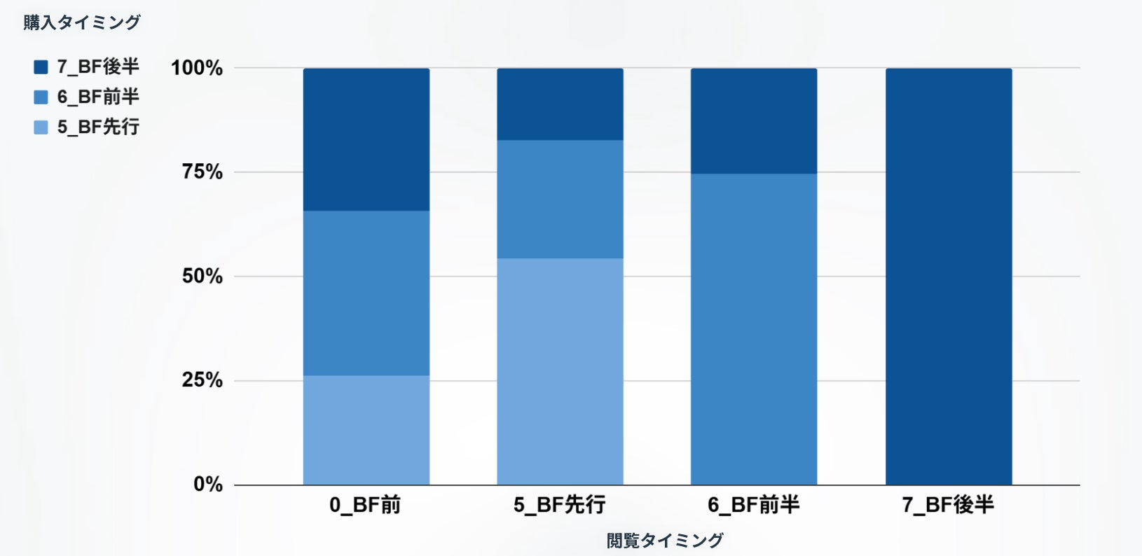 この結果から、購入へ繋げるためには1回のみの閲覧ではなく、いずれの商品も商品同士の回遊性を高めてブラックフライデー前に10回以上の閲覧数を獲得していく必要性があると言えます。