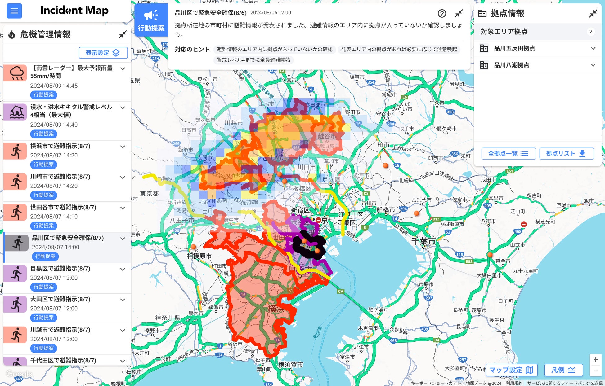 災害時の即時通知・行動提案・影響範囲の把握が一つのマップで可能に