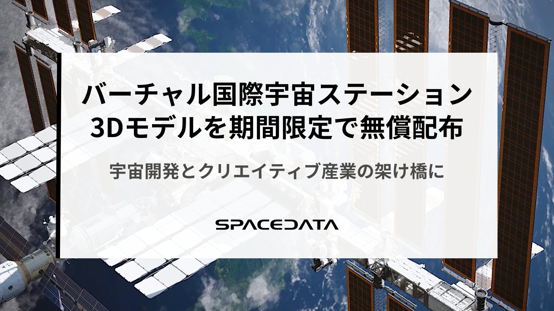 株式会社スペースデータ(本社:東京都港区、代表取締役社長:佐藤航陽、以下スペースデータ)は、「宇宙イノベーションパートナーシップ(J-SPARC:JAXA Space Innovation through Partnership and Co-creation )」の枠組みのもと、国際宇宙ステーション(ISS)をデジタル上に再現した「バーチャル国際宇宙ステーション(ISS)」を2024年11月7日より無償公開しておりますが(※1)、そのうちの「きぼう」日本実験棟の3Dモデルデータを2024年12月25日~2025年1月8日の2週間限定で、全世界に無償で配布することをお知らせします。