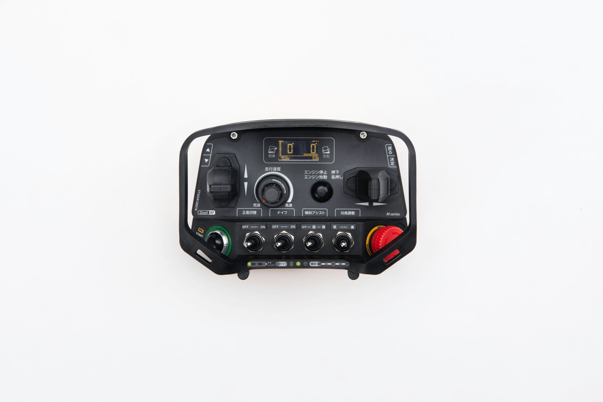 モニタにて機体状態の確認ができ、操作面では手元での刈高・車速調整等が可能な他、傾斜アシスト・正面切替機能の追加でより快適に作業ができます。