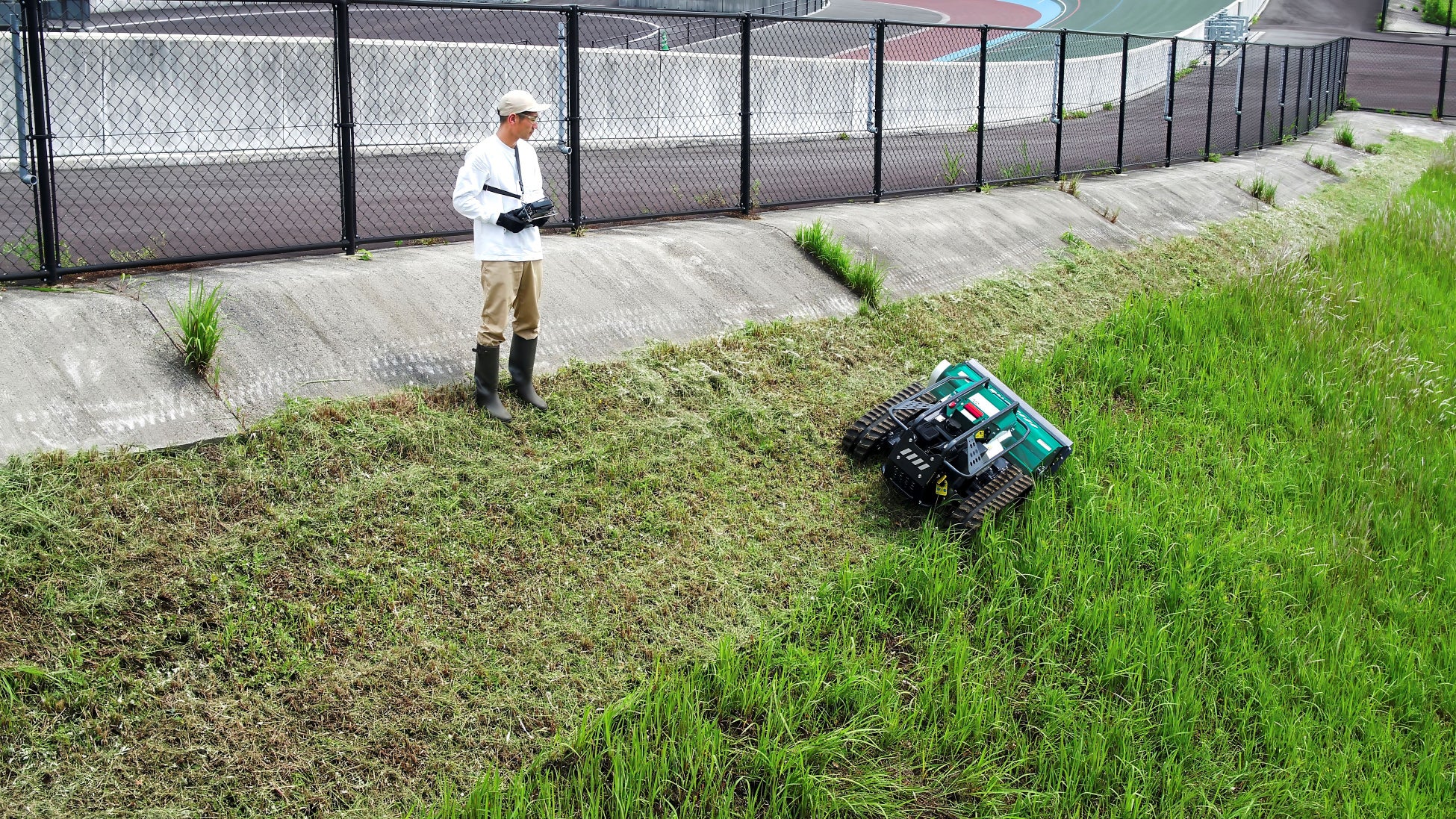高出力エンジンとハンマーナイフ構造を採用し、効率的で安定した草刈り作業を実現。遠隔操作により、作業者は安全な場所から操作でき、休耕田や耕作放棄地、斜面の多い中山間地域でも安心して作業できます。