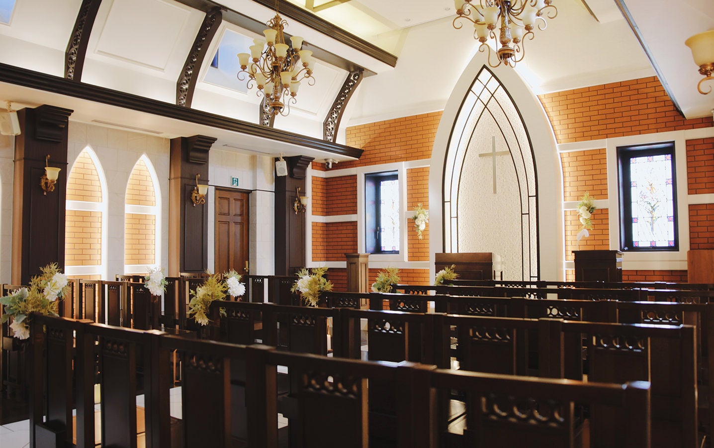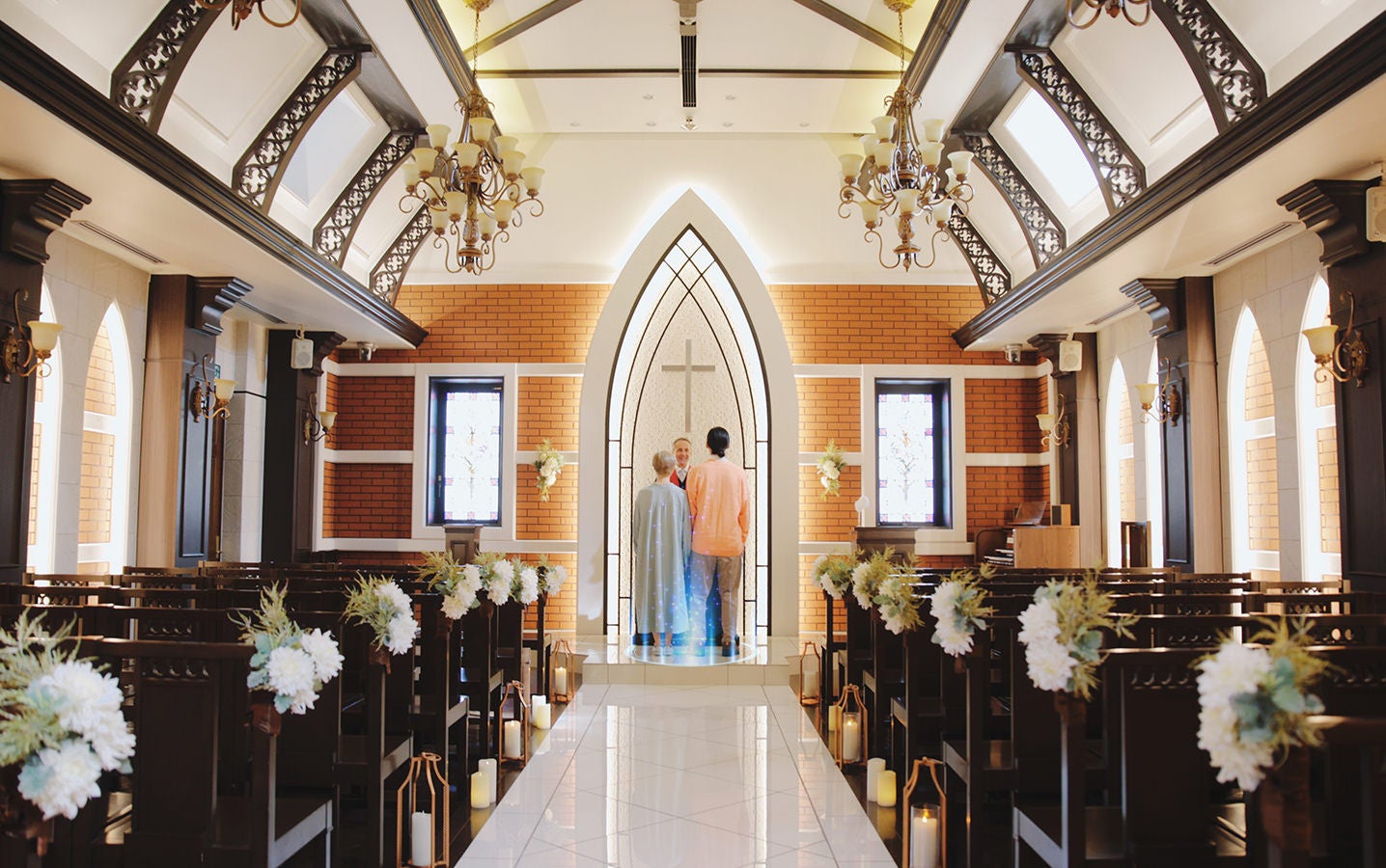 誰もいない式場で、牧師さんがお待ちしています。