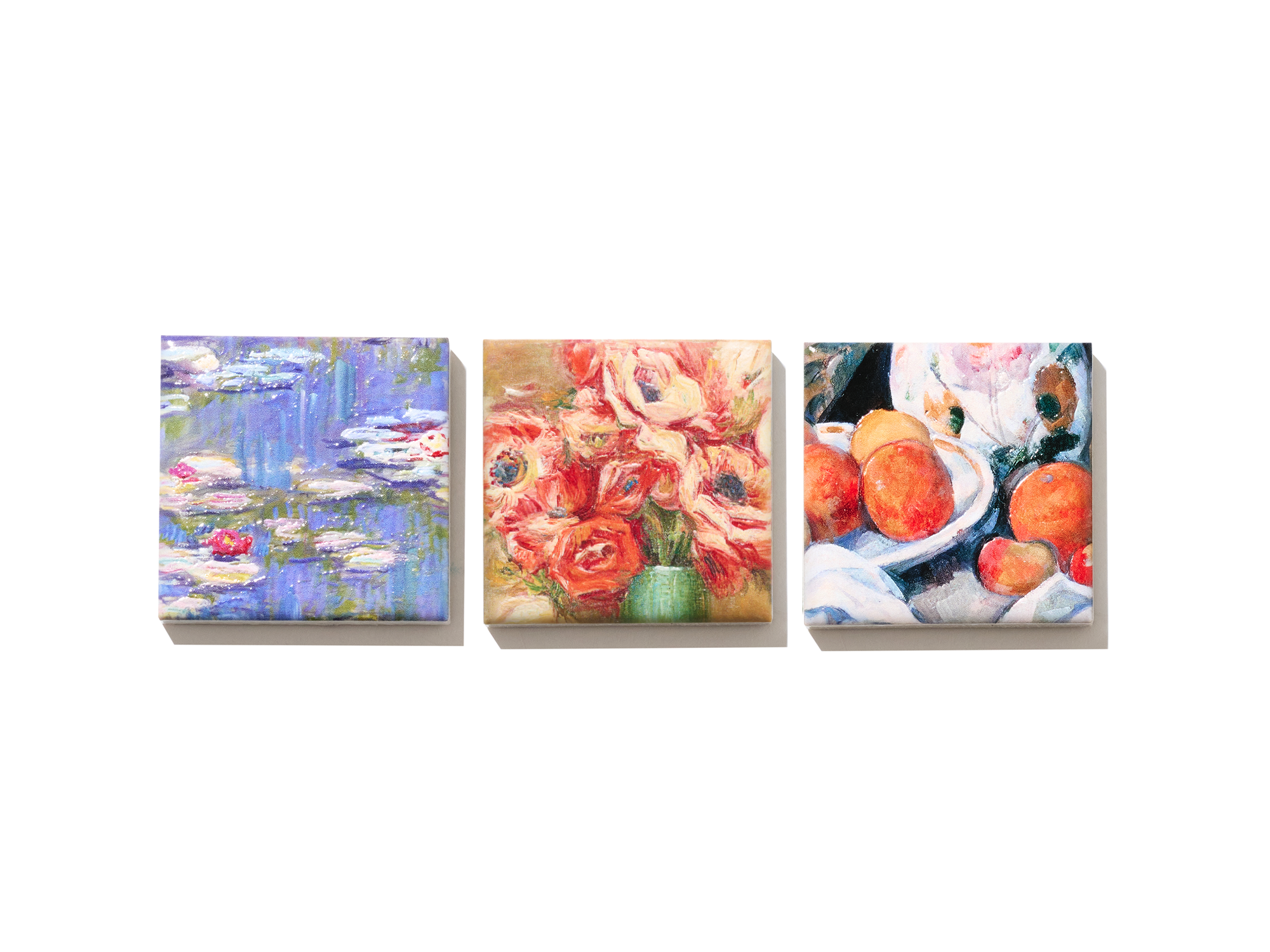 (左から)モネ《睡蓮》、ルノアール《緑の花瓶のアネモネ》、セザンヌ《カーテンのある静物》