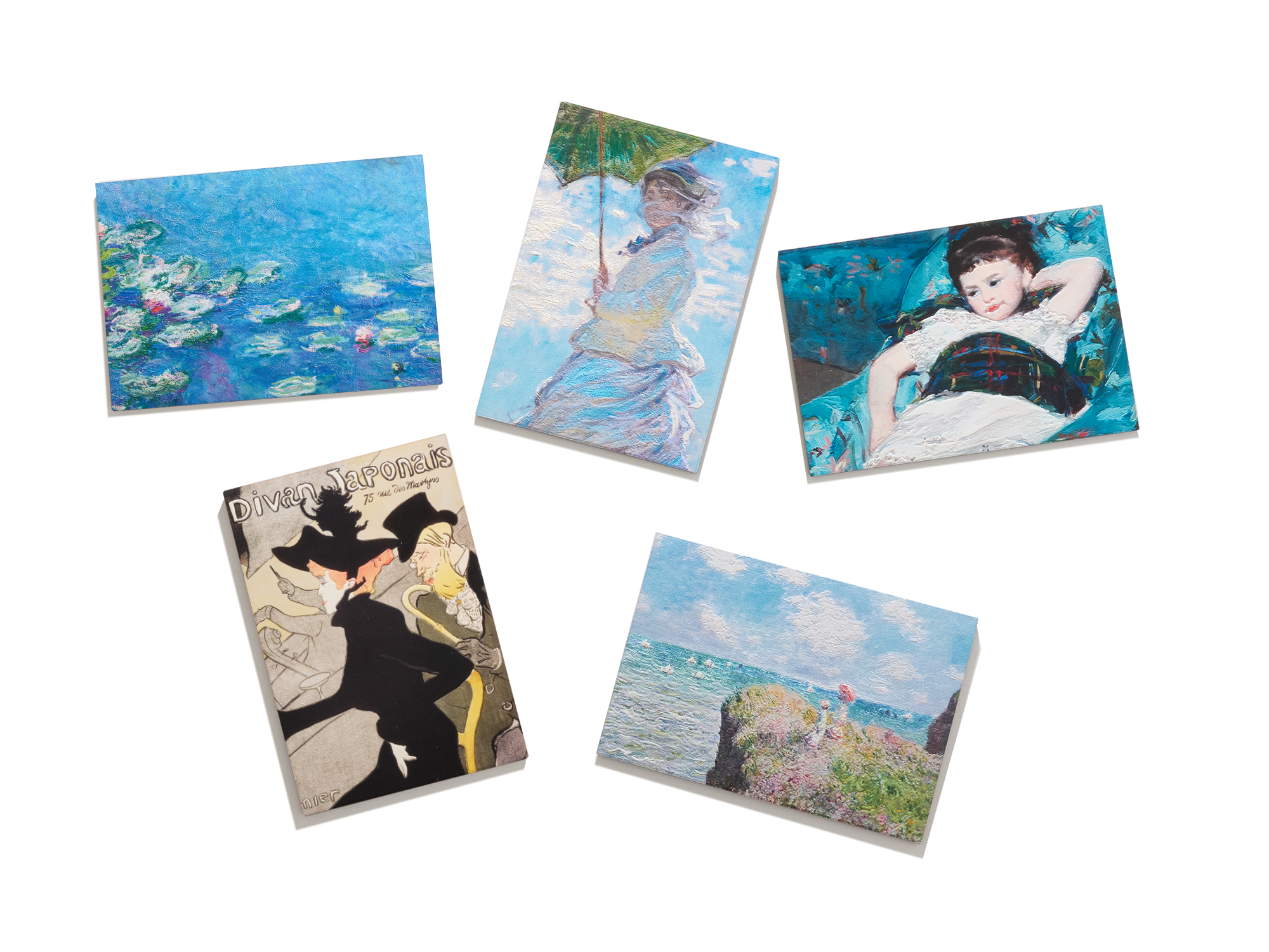 (上段左から)モネ《睡蓮》、モネ《日傘の女性 モネ夫人と息子》、カサット《青い肘掛け椅子の少女》