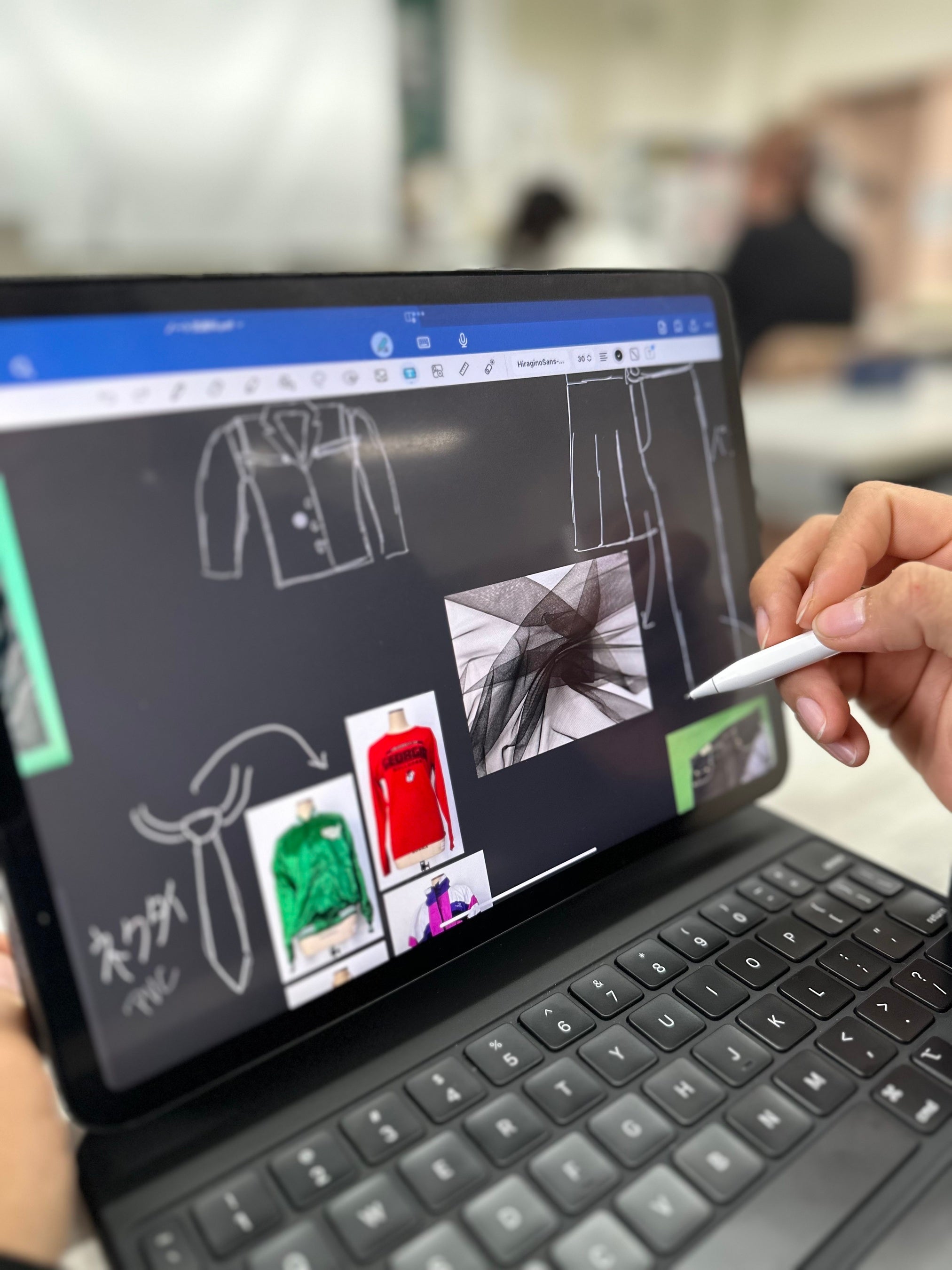 1年次の授業カリキュラムにて軸としている『ファッションビジネス』では、ファッション業界全体の構造や現状の理解を深めながらビジネスへ繋げる創造性を高めることを目標とし、外部企業との取り組みを通し、実践・実務で応用できるスキル習得を目指します。