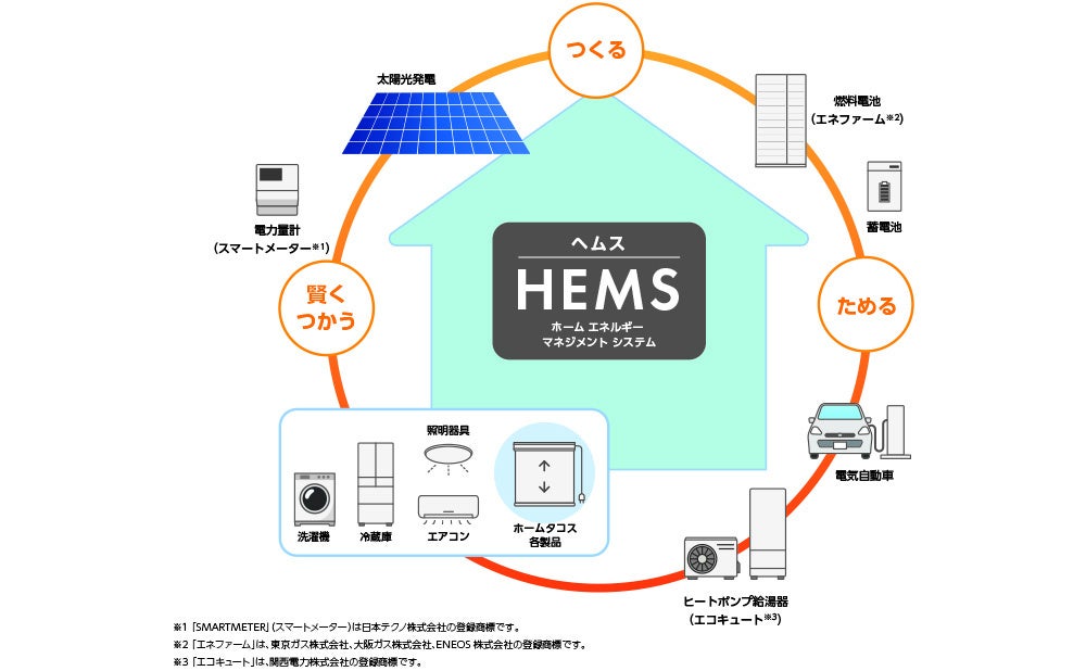 ※HEMS(ヘムス) :Home Energy Management System(家庭で使うエネルギーを把握、管理することで節約するための管理システム)