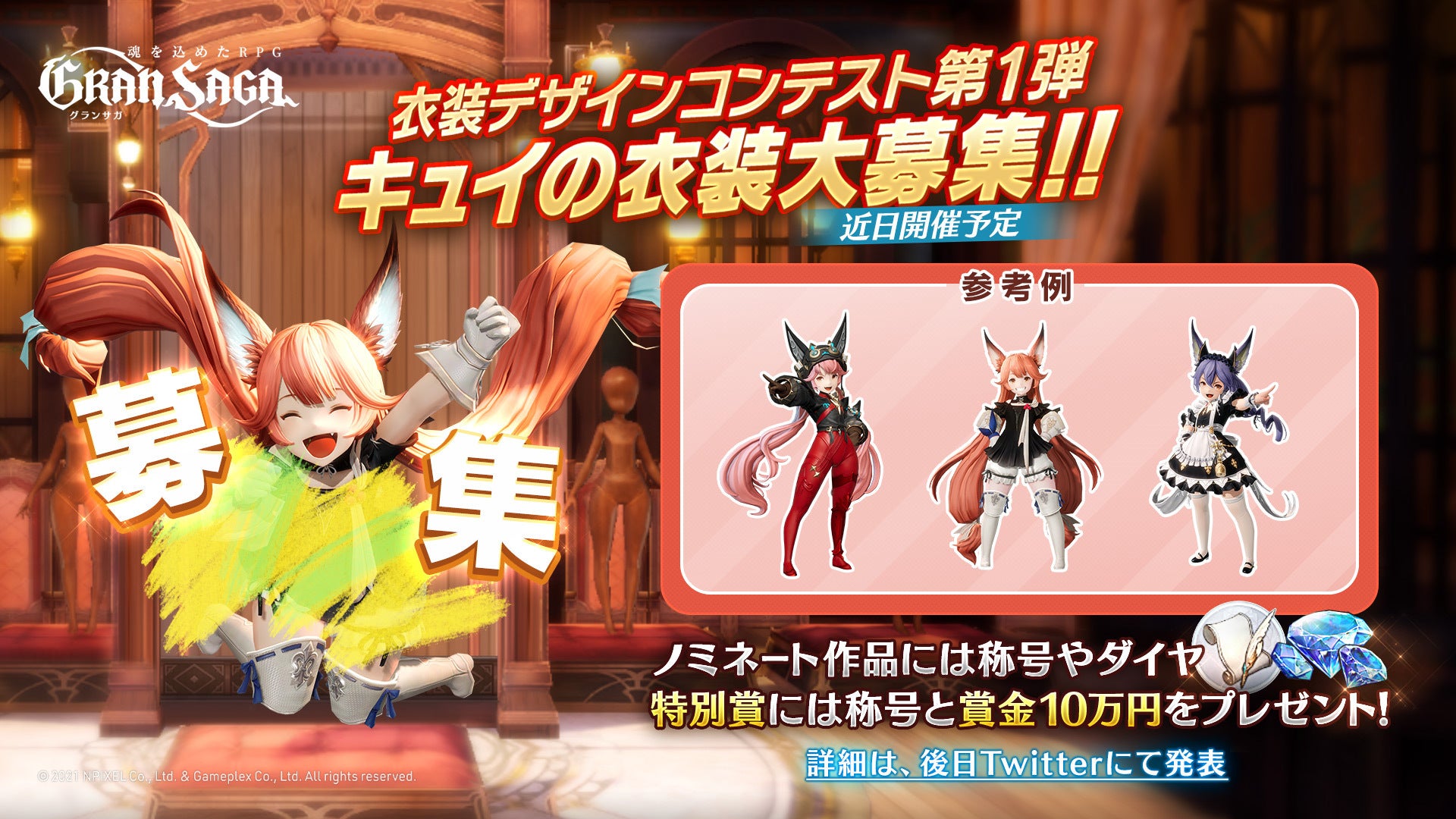 さらに、キュイの衣装をユーザーの皆様にデザインして頂く『衣装デザインコンテスト』の開催が決定!特別賞を受賞された作品にはなんと!称号に加え賞金10万円も!是非奮ってご参加ください!