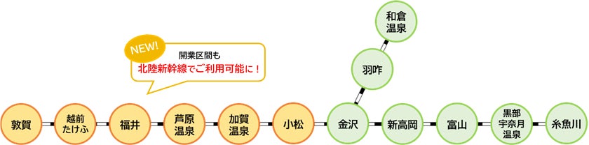 下記発売日時より、小松駅(石川県)~敦賀駅(福井県)を利用するご旅行でも北陸新幹線にご乗車いただけます。