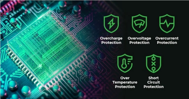 リチウム電池は1 ~ 2 年使用すると充電時に発火の危険性が高くなる可能性があり、火災の原因にもなります。 Anzene IP67ポータブル電源 はこの問題について、以下のような安全機能を採用しました。