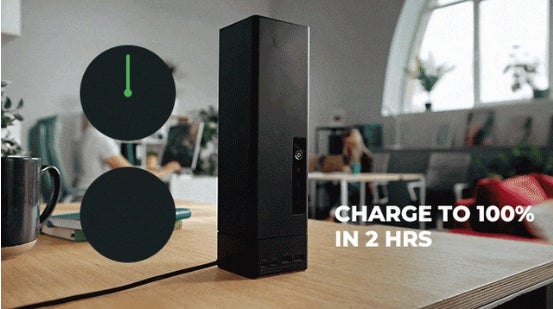 重量約 2 kgで8cm x 8cm x 24cmのコンパクトなボディ。スマートフォン、ドローン、アウトドア用品などに電力を供給できます。軽量・コンパクト・安全性を兼ね備える本製品はどこでも電力が必要な現代のニーズに応えます。