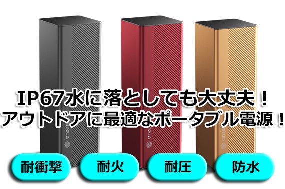 水に落としても大丈夫! アウトドアに最適なポータブル電源! 防塵・防水(IP67)、耐火、防爆、耐衝撃、耐圧の安全性 と 超軽量、コンパクトの携行性を併せ持つ究極のポータブル電源が誕生!
