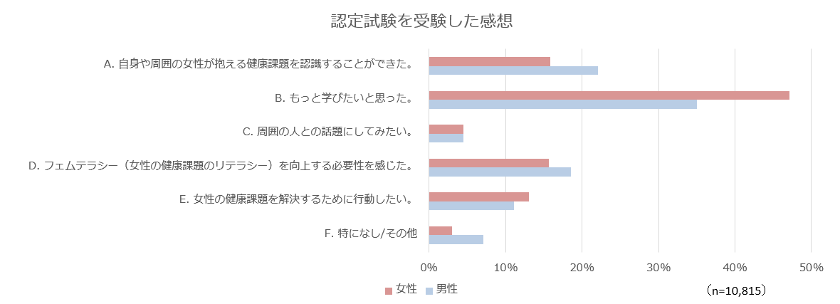 当協会は設立以降、研修プログラムやセミナー開催など、ウィメンズヘルスリテラシー向上につながる啓発活動を続けています。現状の日本では、女性特有の健康課題についての教育が不十分であり、正しい知識を知る機会がない、何を学んでよいか分からないという多くの声が寄せられています。そこで、大人の必須科目として医師監修のウィメンズヘルスリテラシーを学ぶ、触れるきっかけを作りたく、認定資格制度を通じてウィメンズヘルスリテラシーの啓発を推進しております。知らないことを知るに変えることで、さらなる学びや理解につながり、自分をはじめ、周囲に対して理解と行動するきっかけにもなっています。