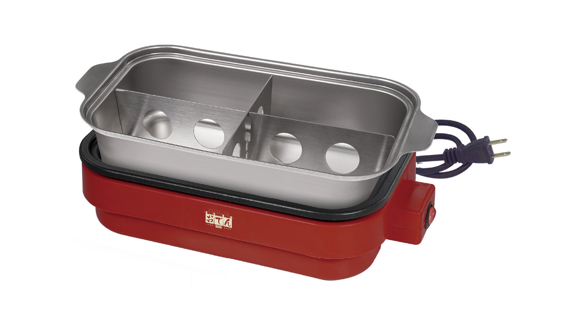 特徴:お家で作れる、ほかほかおでん鍋が登場!好きな食材を沢山いれて、自分好みのおでんを作れる!十字型の仕切りが付属しているので、おでんの具材毎に分類可能。本格的なおでん屋さん風で、美味しさも雰囲気もUP!おでん鍋を外すとホットプレートになるので、お好み焼きや焼肉も調理できます。