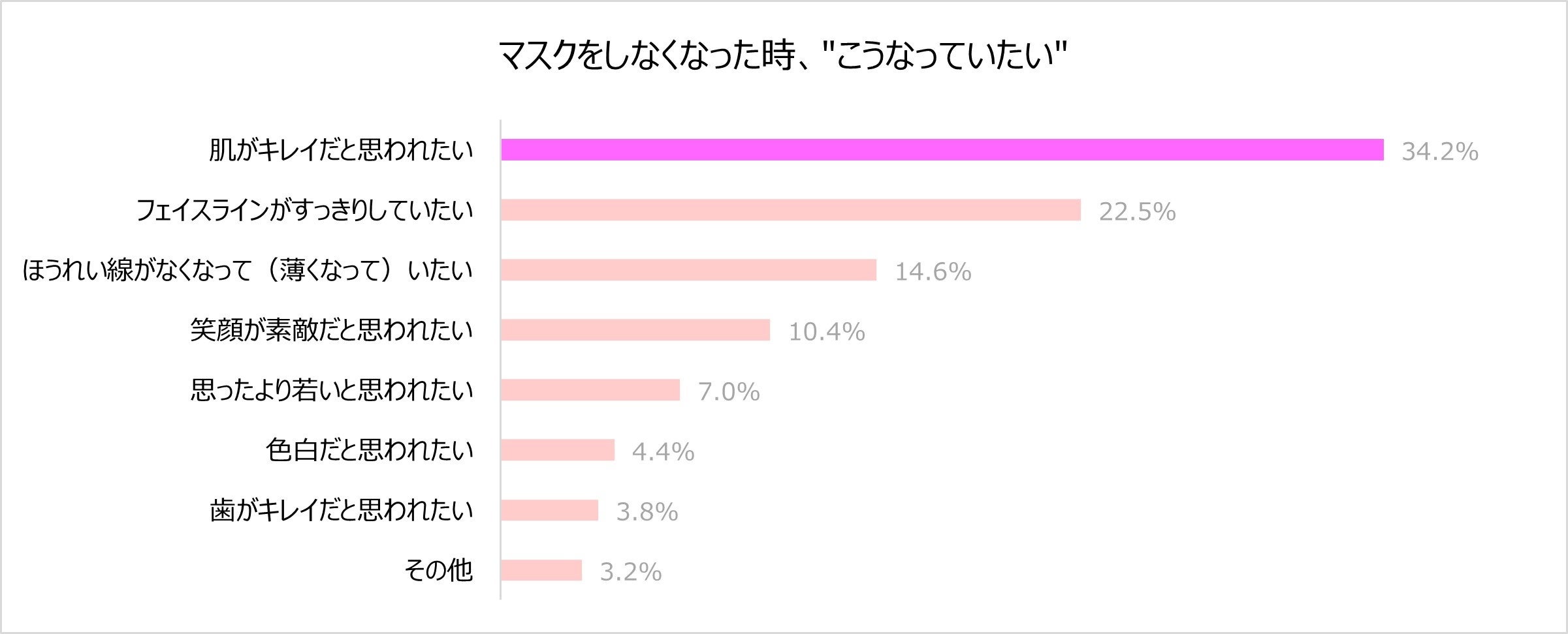 - マスクをしなくなった時には「肌がキレイだと思われたい」が1位。