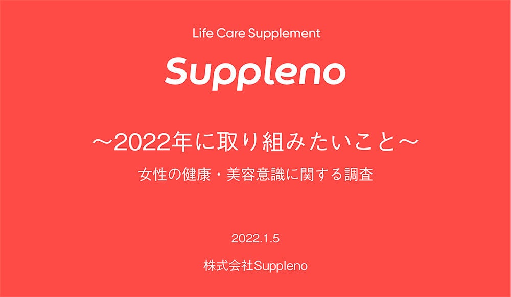 一人ひとりに合ったパーソナライズサプリを提供する 《株式会社Suppleno》(本社:大阪府東大阪市、代表取締役:井藤竜生)は、2022年の美容・健康意識を探るため、アンケートを実施しました。