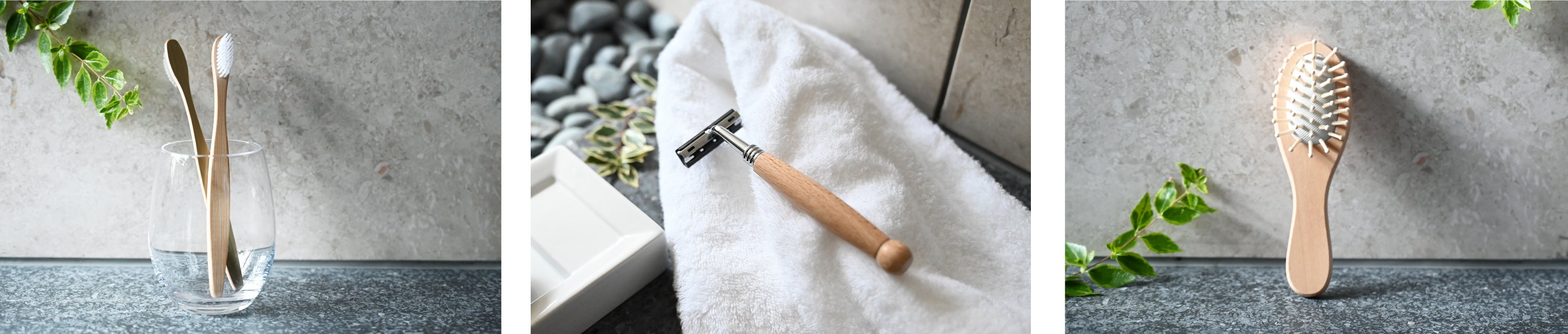 | 2022年4月1日より客室に設置しないプラスチック製アメニティ 歯ブラシ&歯磨き粉セット/髭剃り/ブラシ/コーム/シャワーキャップ/ボディタオル/ヘアゴム |