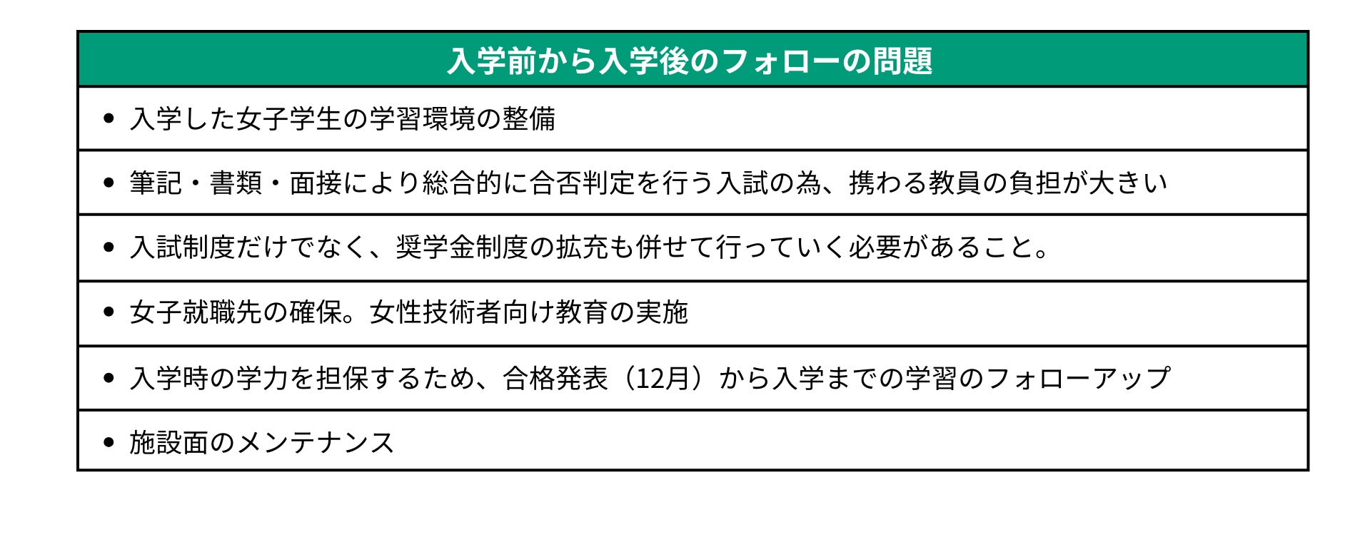 質問:女子枠入試に関して、どんな改善点や課題があると考えていますか?