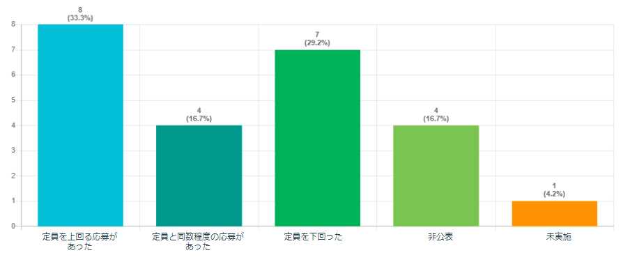 3.応募状況について19大学中12校が定員と同数あるいは上回ったと回答(非公開等の5大学を除外)
