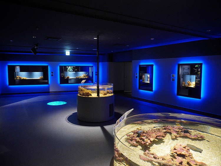 スマートアクアリウム静岡は“街のなかの、暮らしに寄り添うスタイリッシュな水族館”がコンセプトです。生きものたちの美しさや不思議と出会い、小さないのちを感じる5つのエリアには、44基の小規模な水槽に約100種の生きものたちが展示されています。