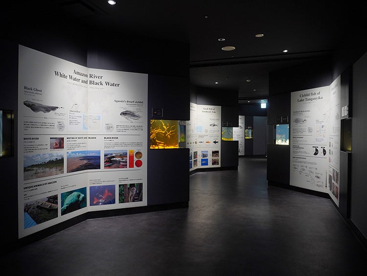 2つ目のエリア「繋がる」では、生態系や多様性をテーマに熱帯地域に生息するいきものたちが展示されています。生きものの生態はもちろん、生きものと人との“つながり”についても解説。まるで大きな生物図鑑を広げたかけたかのような不思議な空間が広がっています。