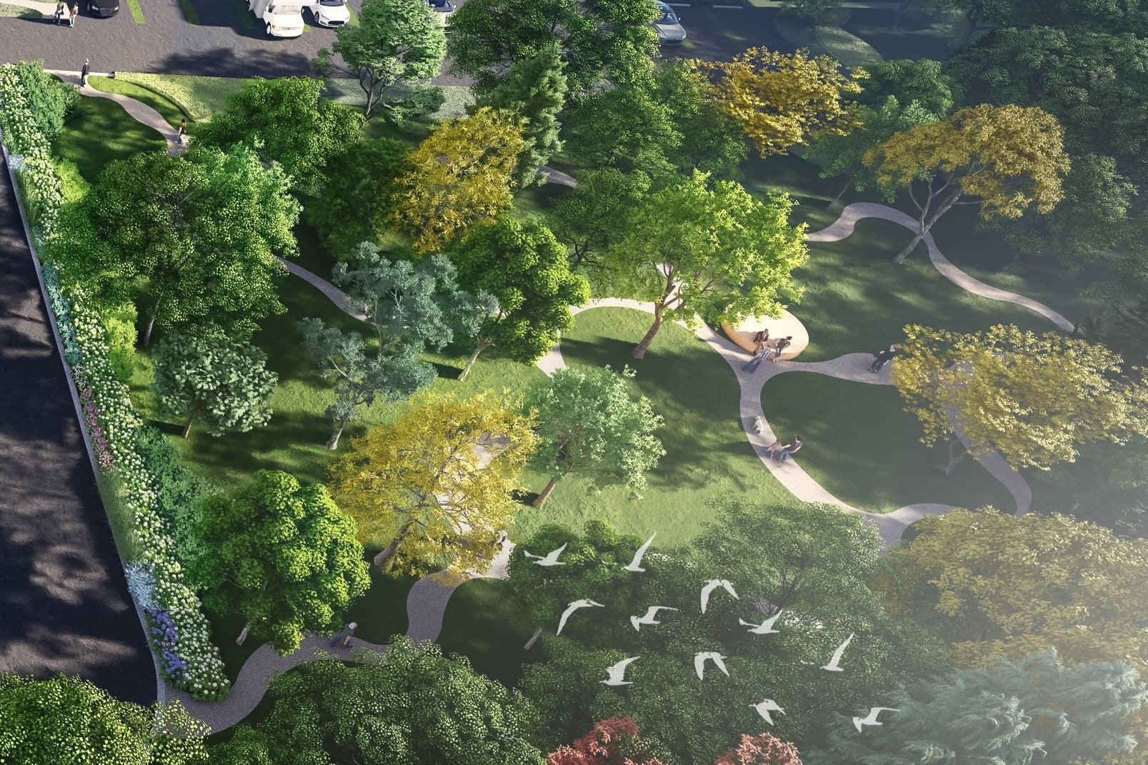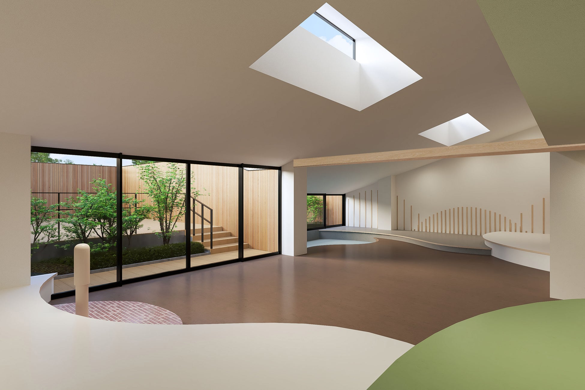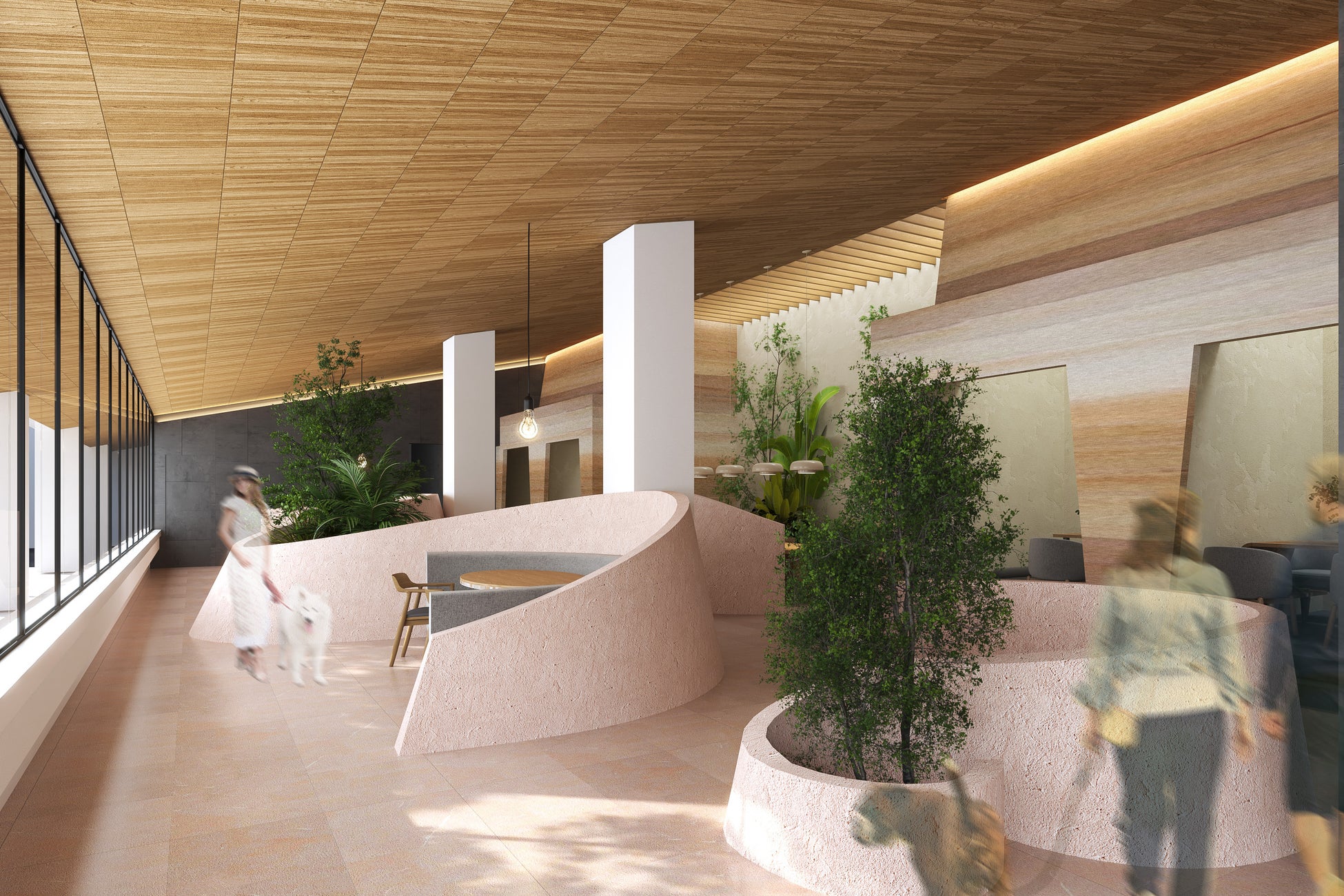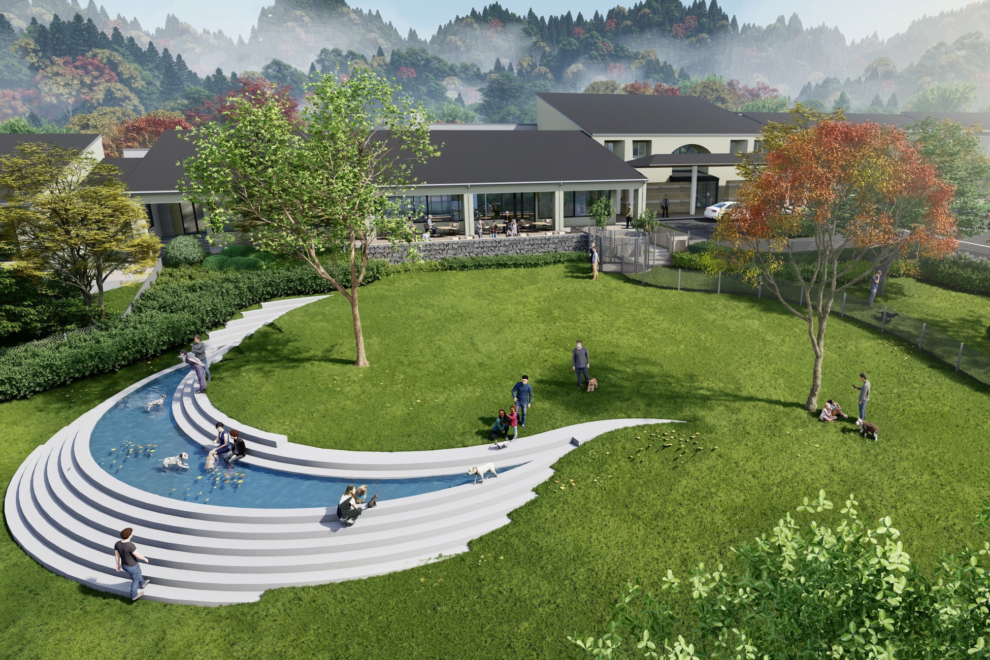 屋外にドッグパークとドッグガーデン、屋内にインナードッグランを設えます。