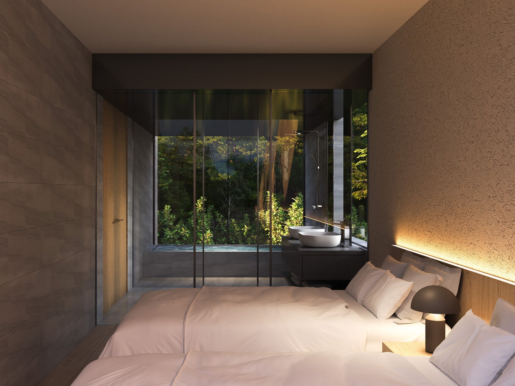 当ホテルは、2024年3月末に閉業した“小田急 箱根レイクホテル”から全面リノベーションし、今冬にグランドオープン。「RETURN TO NATURE(自然への回帰)」をコンセプトに、全客室に温泉風呂を設えるほか、滞在中の食事サービスや館内設備も充実させ、ホテルで愛犬と過ごす特別なひとときを提供します。