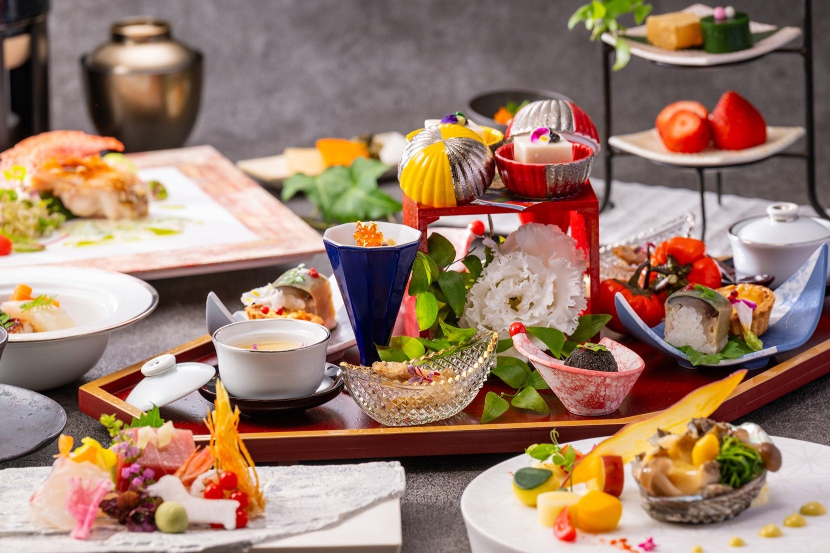箱根西麓野菜や神奈川県産のブランド和牛・大山阿夫利牛を取り入れた「モダン懐石」で、日本料理を現代的なコース仕立てで風味豊かに表現します。