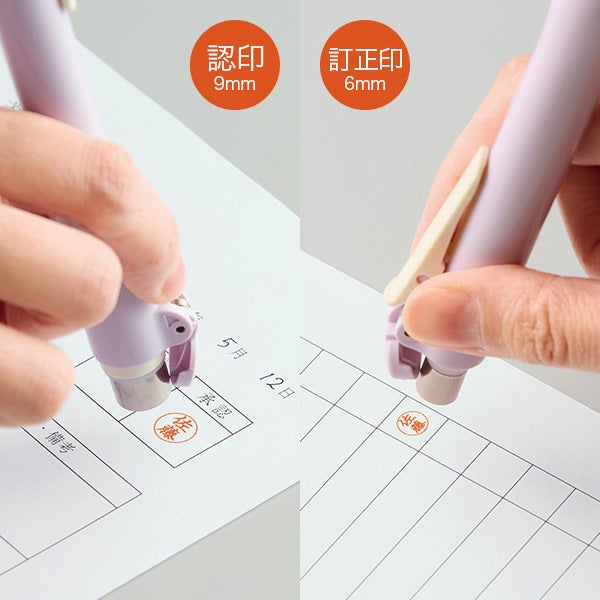 蓋を失くす心配がないスライドボタンのワンタッチ式で、ポンとおすだけでキレイな印影が残せるのが嬉しいポイント!