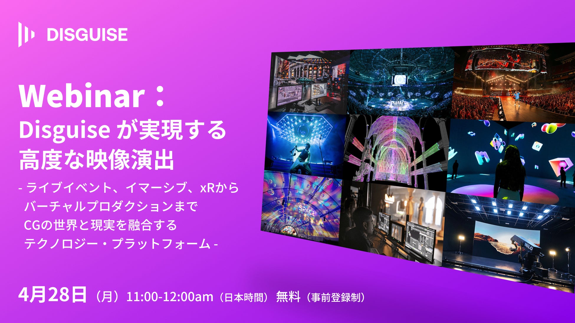 【無料ウェビナー】「Disguise(ディスガイズ)が実現する高度な映像演出 - ライブイベント、イマーシブ、xRからバーチャルプロダクションまで、CGと現実を融合するテクノロジー・プラットフォーム」