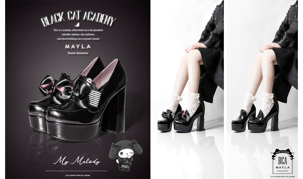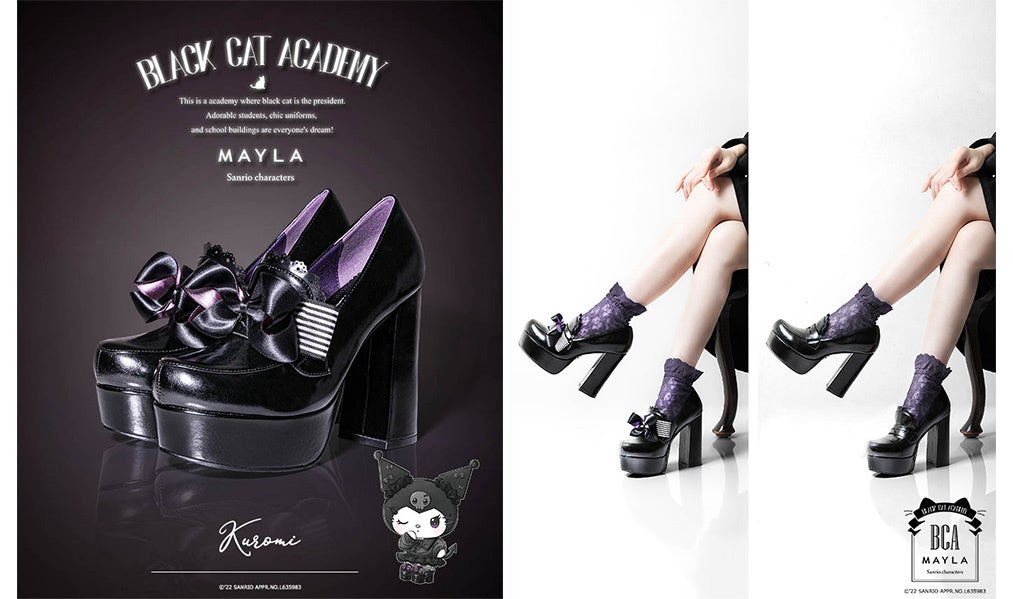 サンリオキャラクターズ×MAYLA新コレクション!第一弾はブラックレザーの厚底パンプス2022年12月16日(金)12:00より受注販売開始!
