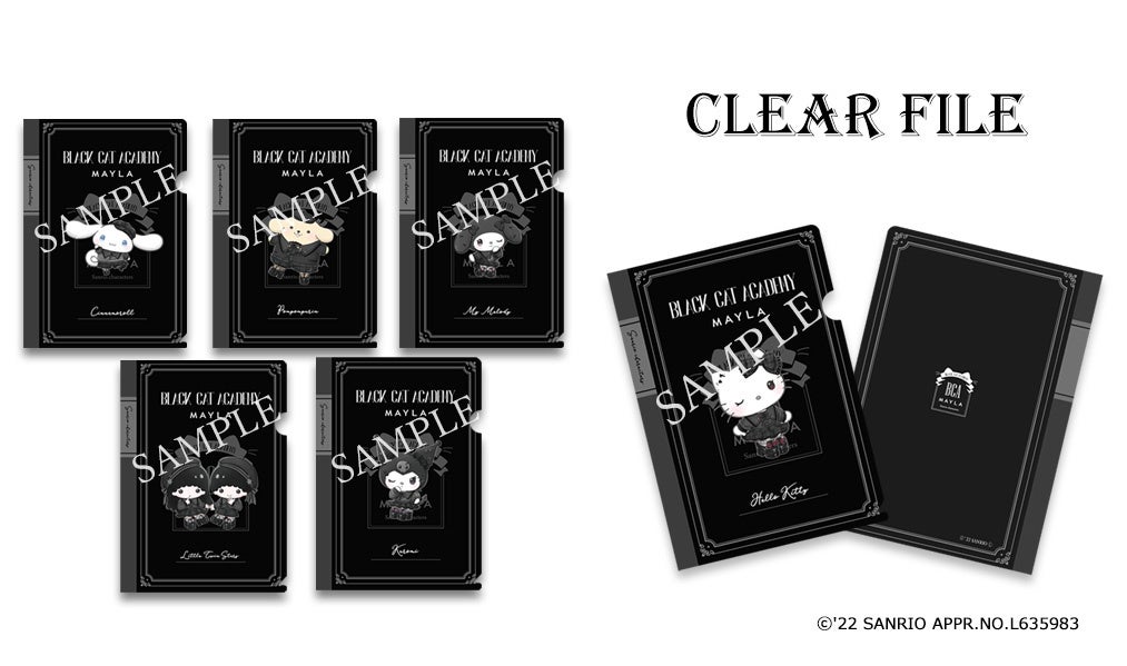 アイテムをお買い上げの方に、1商品につき1枚、ご購入カラーと同じ限定描き起こしイラストを使用したB5 クリアファイルをプレゼント。全体が学習ノートをイメージしたデザインとなっており、裏側には「Black Cat Academy」の校章がデザインされています。