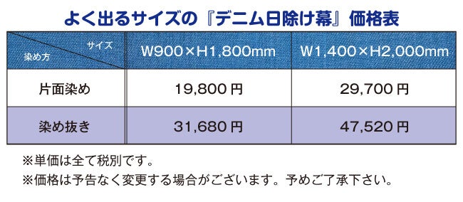 デニム日除け幕の価格と購入方法