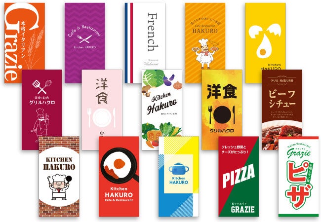「デニム日除け幕」は、お店の個性を引き立てるオリジナルデザインを簡単に作成できます。豊富なデザインサンプルから選び、文字や色を変更するだけで、世界に一つだけの看板を作ることができます。また、ロゴマークや商品の写真を入れることも可能で、訴求力の高いデザインが完成します。