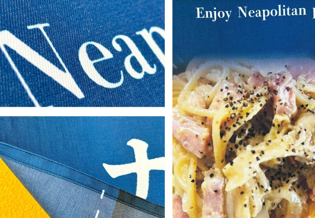 デニム素材に鮮明なフルカラー印刷が可能になりました。お店の看板としてブランディングを強化するオリジナルデザインの日除け幕が簡単に製作できます。