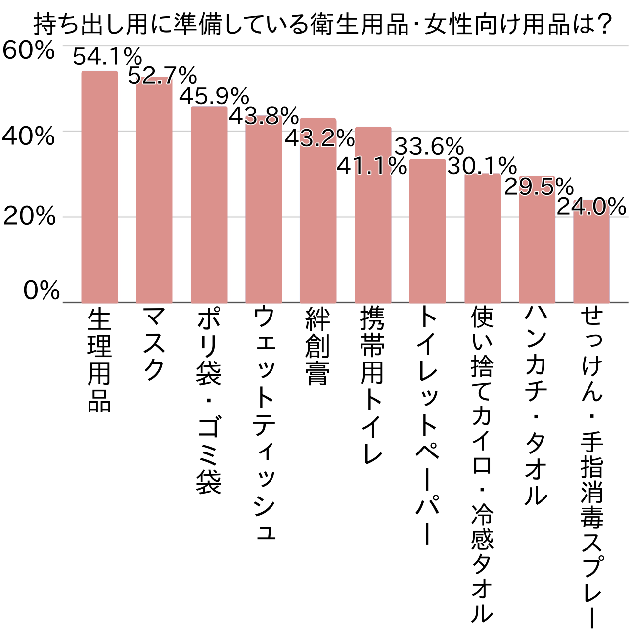 - 最低限の避難グッズは考えているが衛生用品や女性向け用品まで準備の手が回っていない