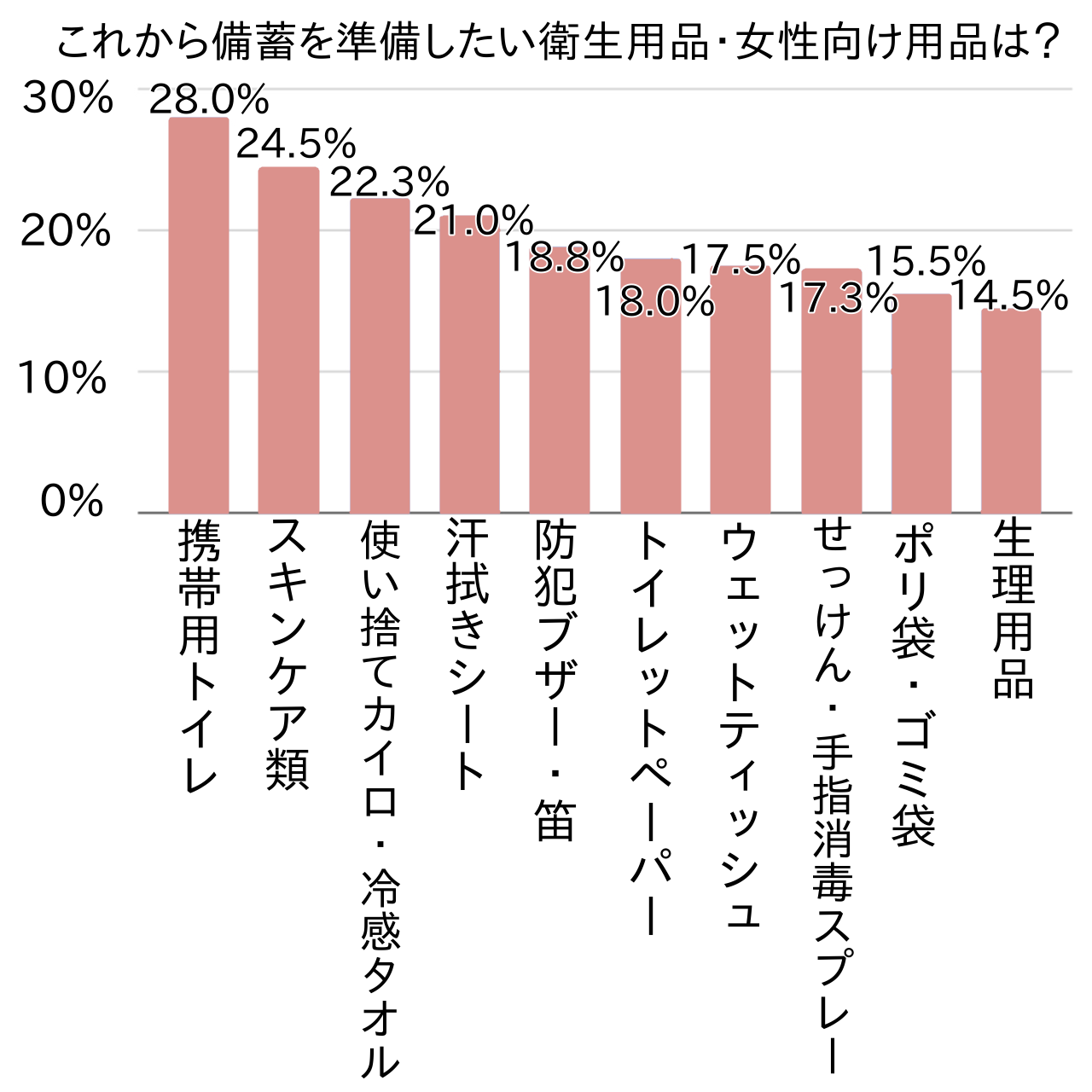 アンケートでは続いて、これから備蓄を準備したいと考えている衛生用品・女性向け用品について尋ねてみました。