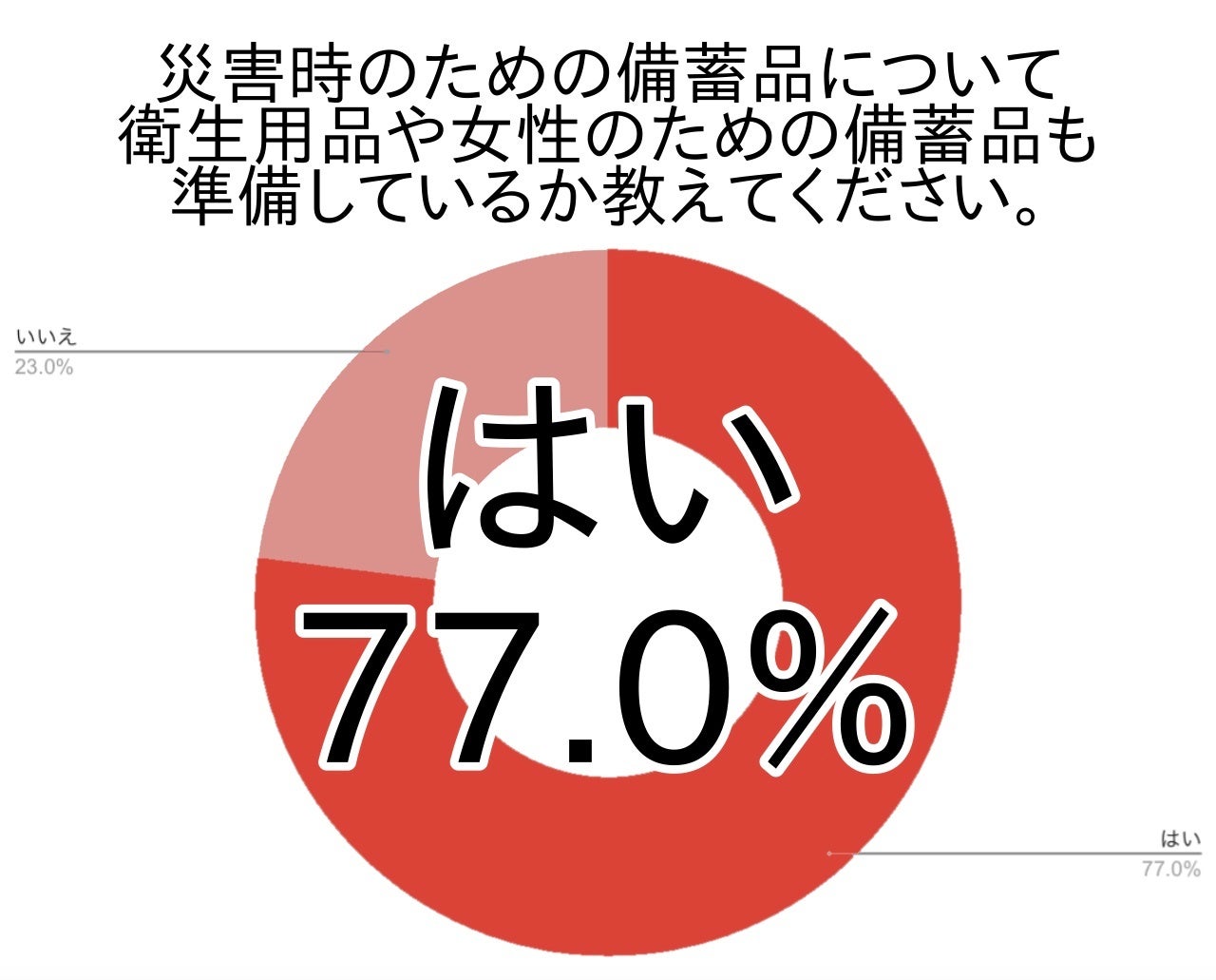 今回のアンケートでは最初に、回答者の自宅の防災備蓄品について、衛生用品や女性向け用品の備蓄品も準備しているかを尋ねました。