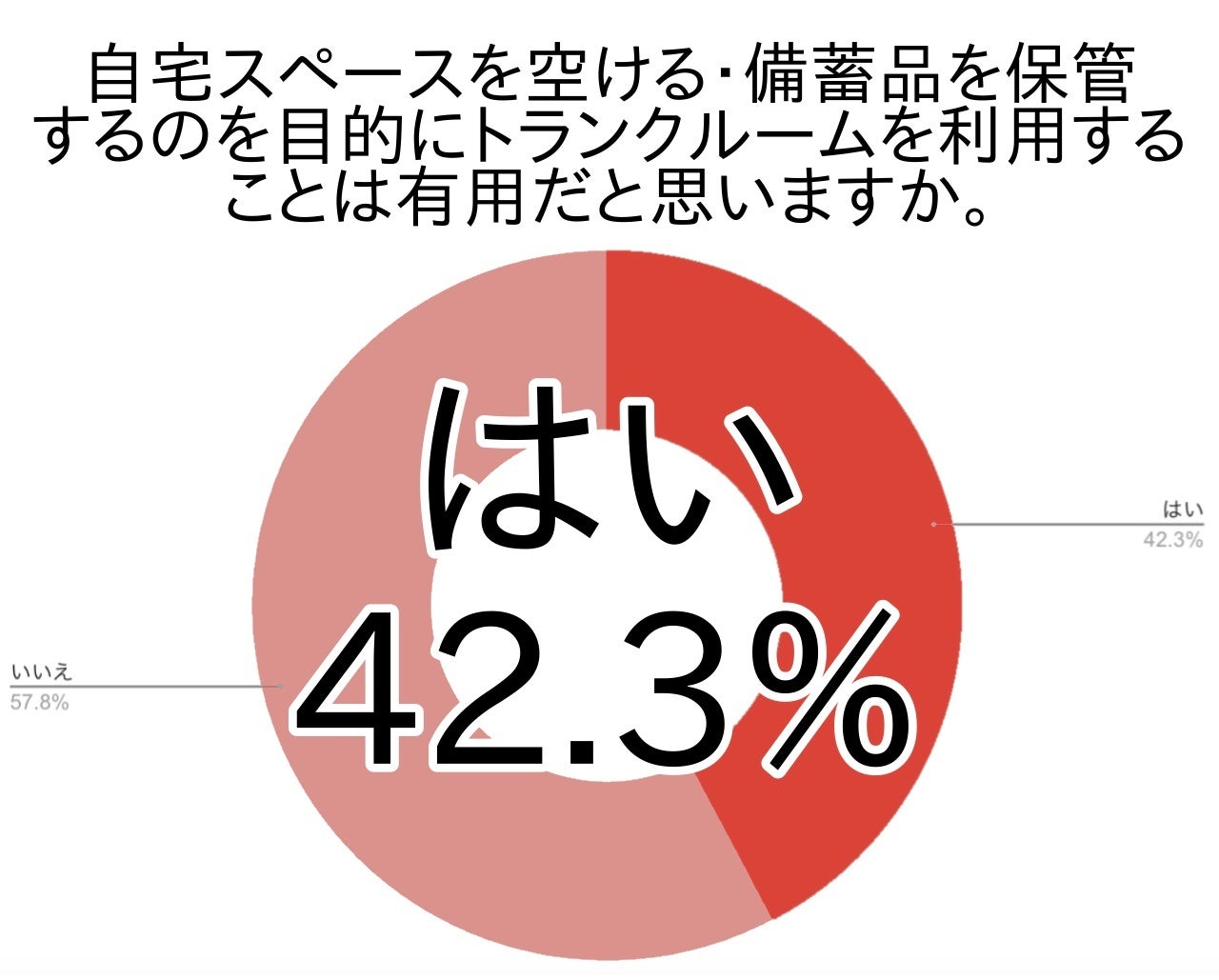 アンケートでは、自宅スペースを空けたり備蓄品を保管するためにトランクルームを利用することは有用だと思うかを尋ねました。