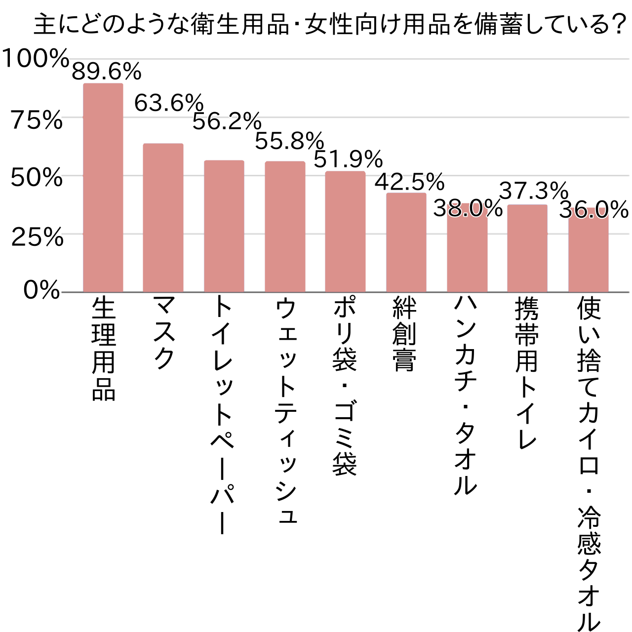 第1位は「生理用品(89.6%)」で、約9割の方が備蓄していることが分かりました。