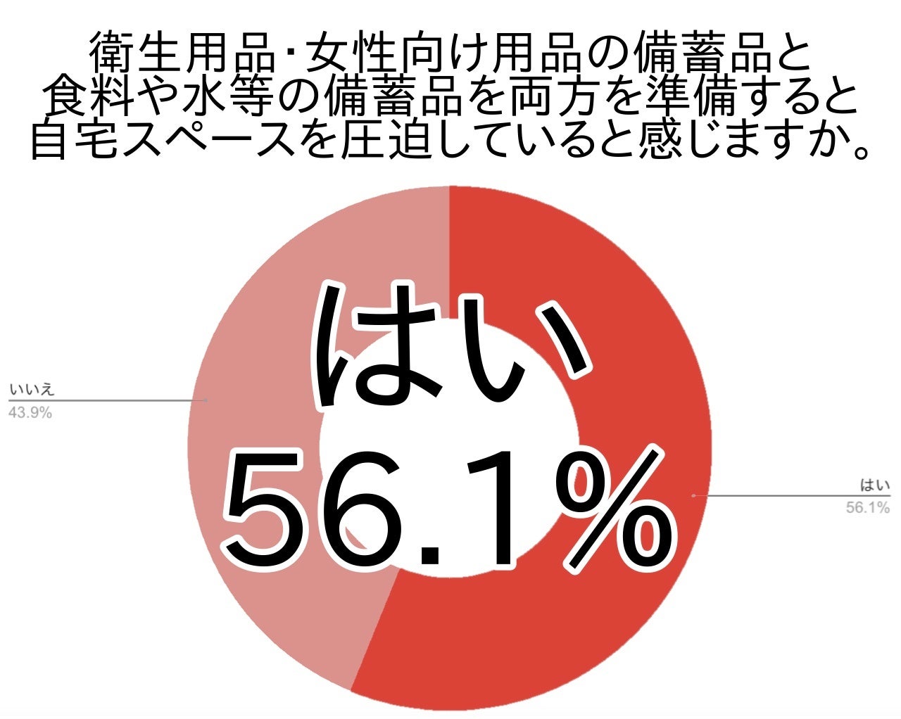そこで、アンケートでは、衛生用品・女性向け用品を食料や水等に加えて備蓄すると自宅スペースが圧迫されると感じるかを尋ねました。