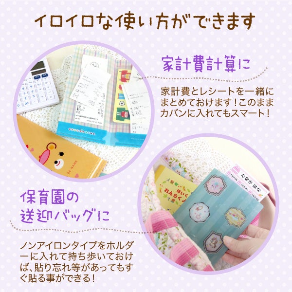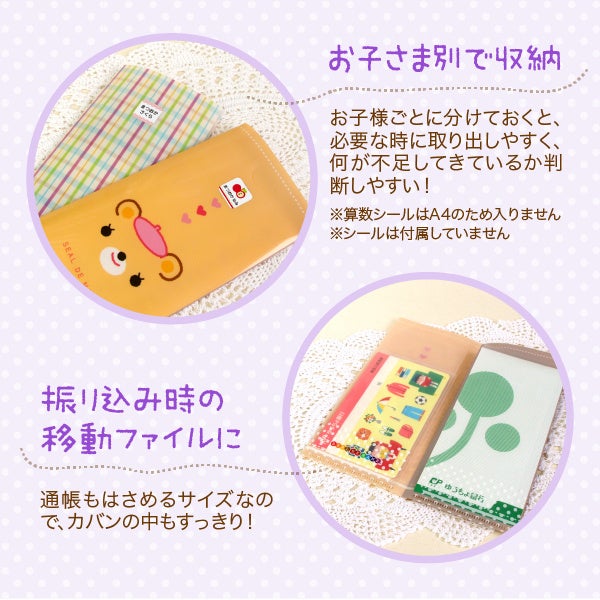 お名前シールを整理したり、通帳やチケットホルダーとしてもお使いいただけます。