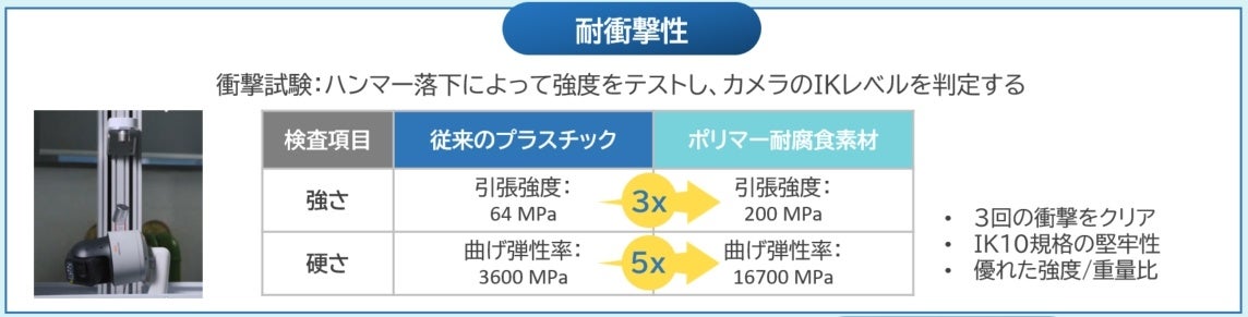 そのため、Hikvisionは新世代のポリマー素材で腐食問題を解決するという新たなソリューションを提出しました。ポリマー素材を採用することにより、下記の機能を実現しました。