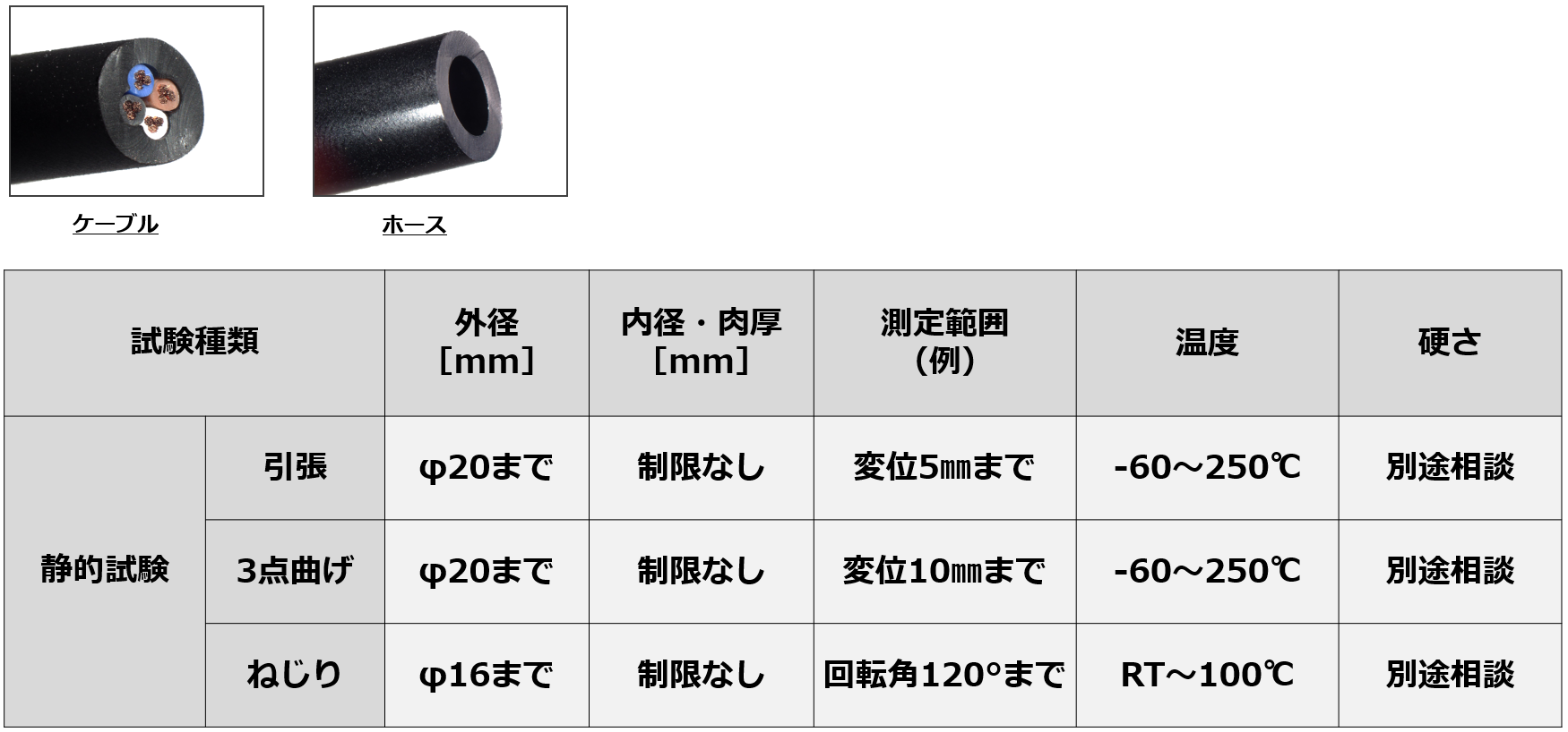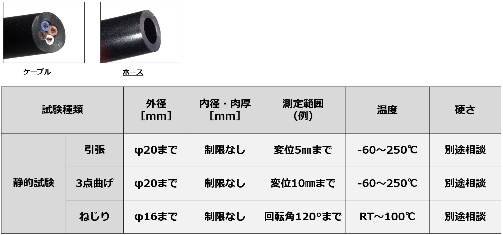 当社の「ロボットケーブル・ホース物性値測定支援技術」は、ケーブル・ホースの力学的特性(物性値)を高精度に計測し、シミュレーションに活用可能なデータとして提供する技術支援サービスです。