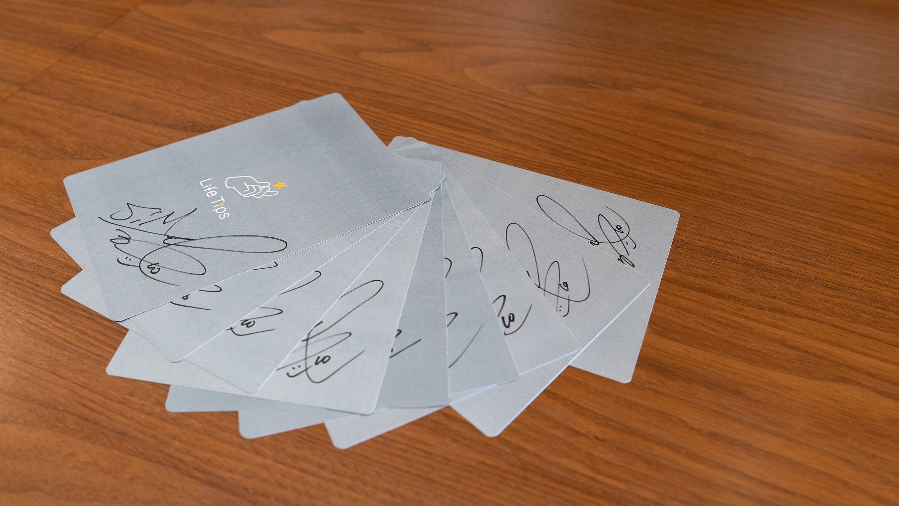 さらに、今回の対談で使用したトークテーマのカードにMAH本人がサインを入れてくれました。