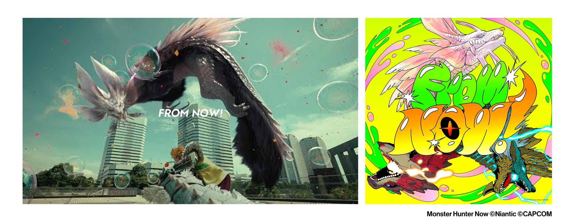 株式会社ナイアンティックと株式会社カプコンが提供する、現実世界で狩猟体験を楽しめるスマートフォン向けアプリ『Monster Hunter Now(モンスターハンターNow)』と、YOASOBIのコンポーザーとしても活動する Ayase がタイアップ。Ayase は中田ヤスタカ (CAPSULE)と共同で作曲・編曲を手がけ、新曲「From Now!」を制作。