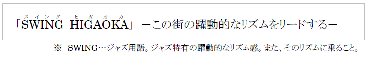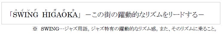 コンセプトには、再開発計画全体コンセプトである「SWING HIGAOKA」と連動し、立ち寄るという意味を持つ「Swing-by Higaoka Life」を掲げ、穏やかな毎日の生活「ヒガオカ暮らし」を補完し支えになるような、また毎日の生活の豊かさを増幅させる施設を目指します。