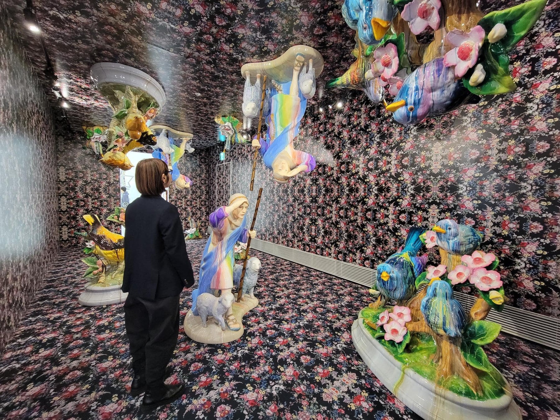 新作のインスタレーション アリスの不思議な世界に迷い込んだよう