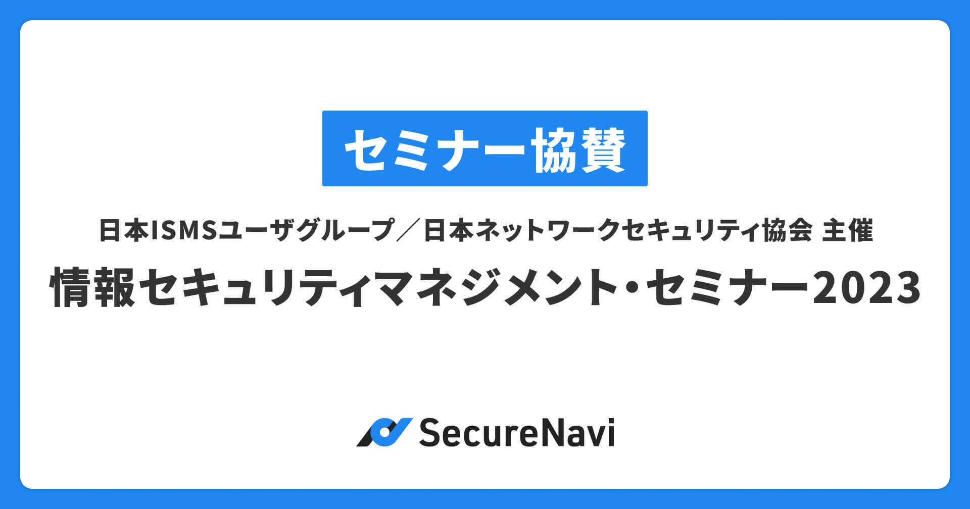 SecureNavi株式会社、日本ISMSユーザグループ/日本ネットワークセキュリティ協会が主催する「情報セキュリティマネジメント・セミナー2023」に協賛