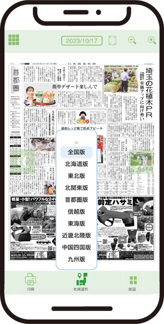 【日本農業新聞電子版】紙面ビューアー 全ての地方版が閲覧可能に