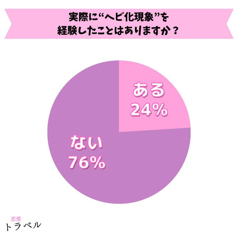 全国の20代〜50代の女性の中で“ヘビ化現象”を経験したことがある方は、24%と比較的少ない人数であることがわかりました。